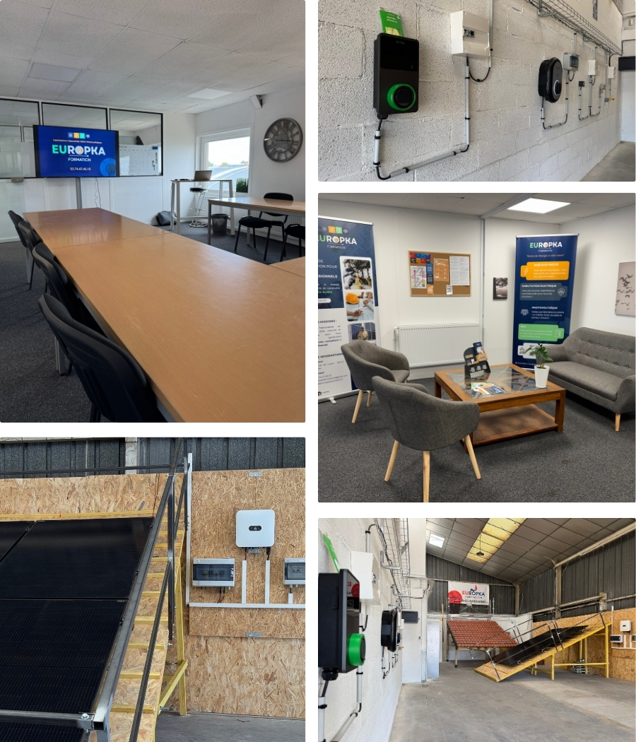 Chez Europka Formation, situé à Seclin dans les Hauts-de-France, nous avons conçu nos locaux pour allier accessibilité, confort et performance pédagogique. Que vous suiviez une formation en électricité, IRVE, photovoltaïque ou habilitation électrique, chaque espace est aménagé pour favoriser la concentration, l’interaction et l’apprentissage actif.