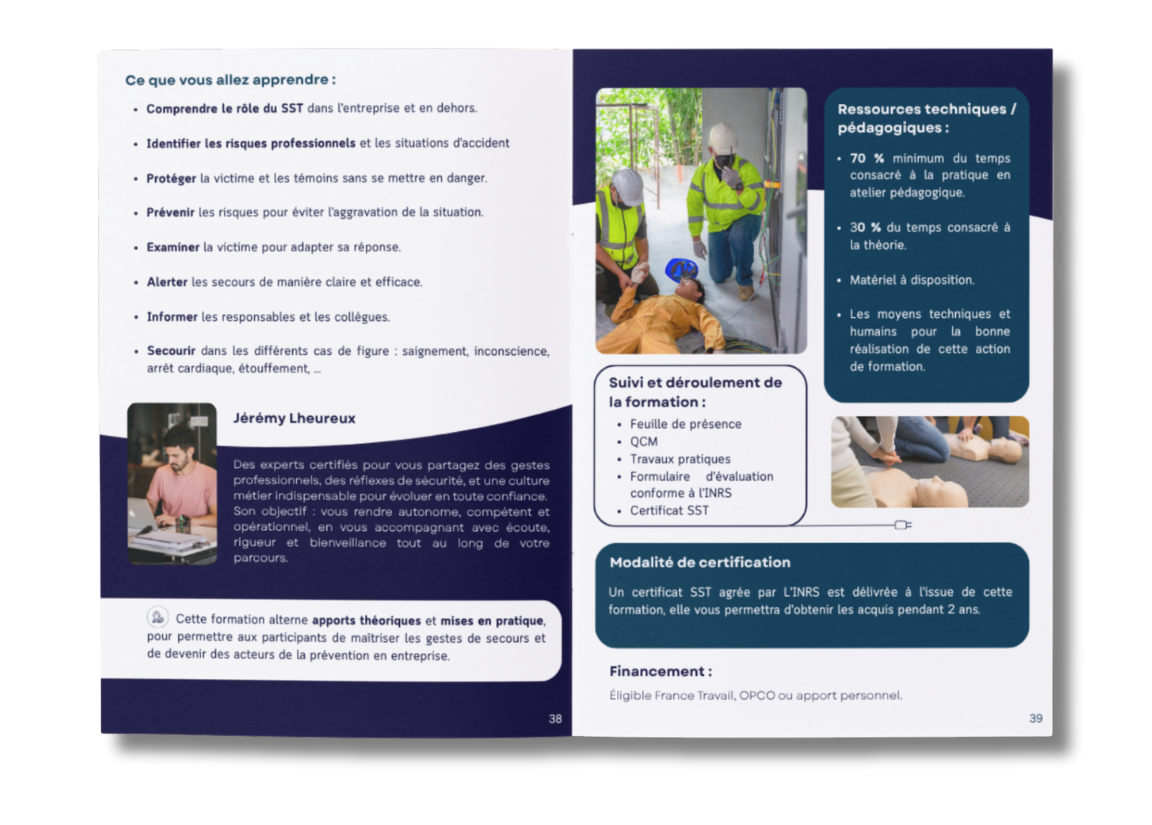 - Actualiser vos connaissances en lien avec les risques spécifiques de votre entreprise ou établissement, et intégrer les évolutions du programme SST.